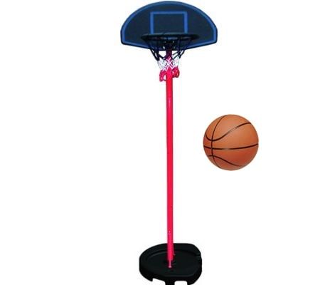 Can be adjusted to 3 different heights by removing or adding a metal link. Maximum height of ring 180cm. Fill the base with sand or water to stabilise.
