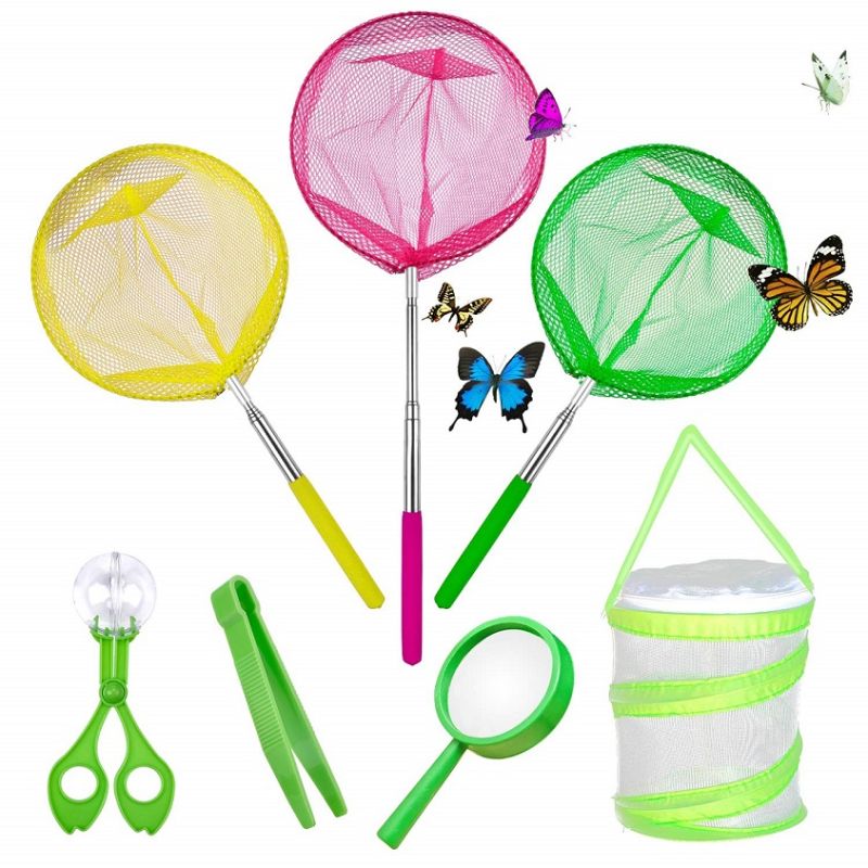 Encourage young explorers to learn about the butterflies and bugs living in the garden with the Butterfly Net Set.Set includes: 3 telescopic butterfly nets, magnifying glass, tweezers, bug-catcher viewing tongs and a mesh habitat netAge: 3+years