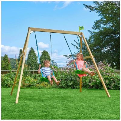 Room for two means twice the fun with the Forest Double Swing Set which is ideal for smaller gardens and comes complete withan attractive wooden frame and 2 x Rapide Swing Seats.Please note: