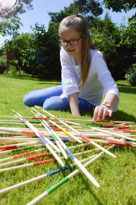 This traditional game requires skill, nerve, and a very steady hand. Players pick up sticks of different colours, to gain maximum points. Beware, if you move another stick you miss your turn. Hours of entertainment for the family. Age Suitable: 8+ Can be played both indoors and outside.