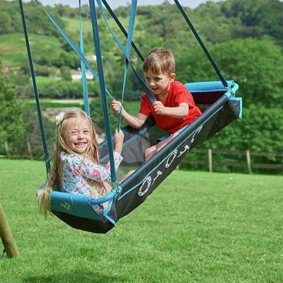 Simply pull on the ropes and make the TP Pirate Boat swing higher. Made of mesh for easy rainwater drainage and adjustable, rot resistant ropes, the Pirate Boat features a padded backrest for extra comfort.